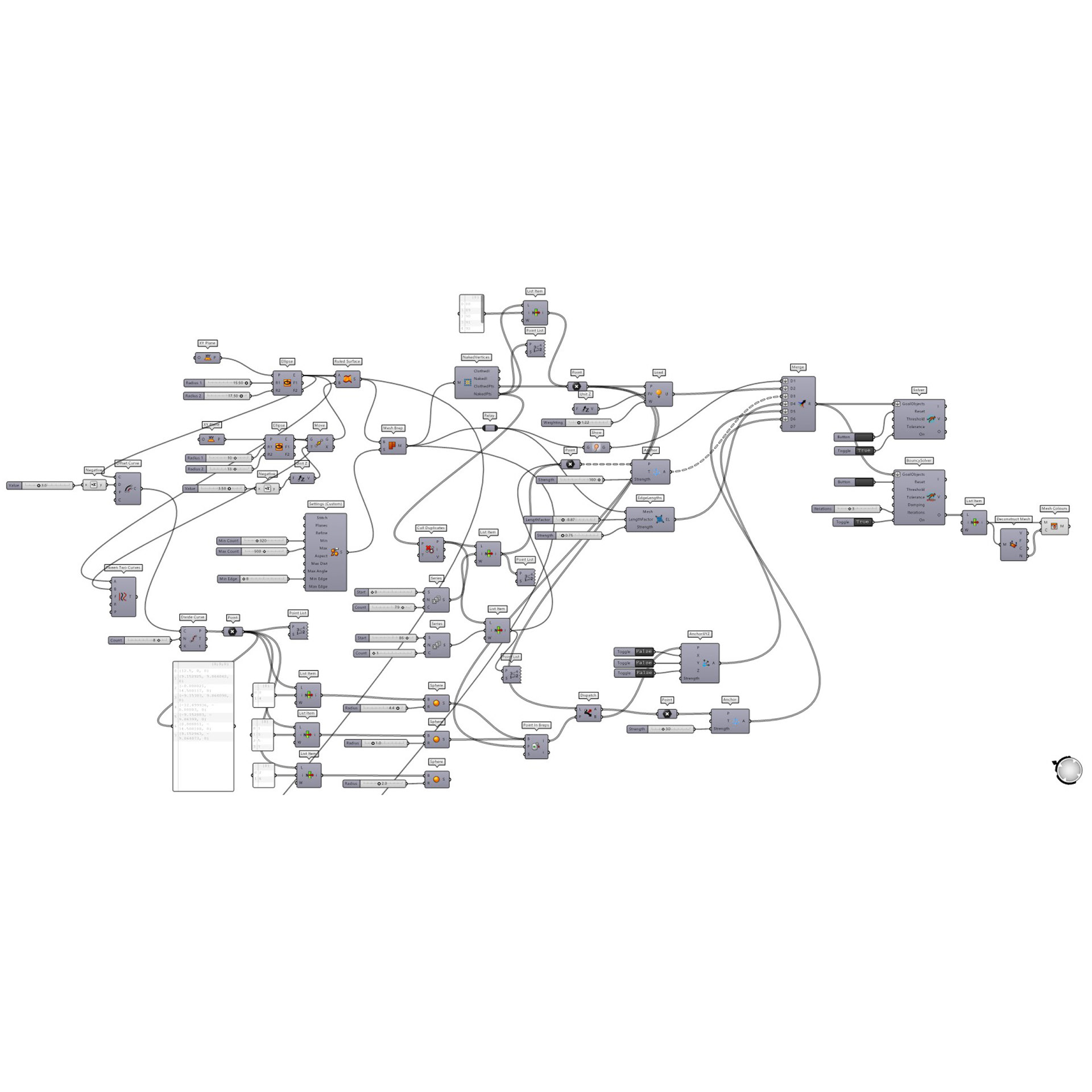 The parametric process - Form Finding + Optimization + Structure Stability + Solar Radiation + Detailing